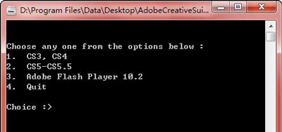 这里要选择你需要的卸载模式,如果卸载Adobe CS3/CS4的软件,则输入数字1,然后回车;要卸载Adobe CS5/CS5.5,则输入数字2并回车,要卸载Adobe Flash Player,则输入数字3并回车。这个卸载工具也有最新版,如果你安装的版本比较新,可以下载最新版的,清理选择你要清理的版本