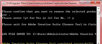 如果出现这句话:Adobe Creative Suite Cleaner Tool completed successfully,则说明卸载成功,再安装软件就不会再影响了。