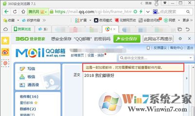 5、好了,通过上述方法我们就成功发送了加密的QQ邮件,接下来我们看看收件方打开邮件的效果: