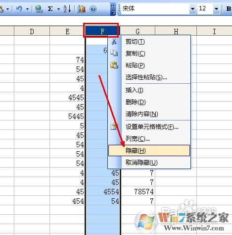 如上图所示,我们要把EFG 中间的F列数据隐藏起来,整列选择之后右键隐藏就可以了。