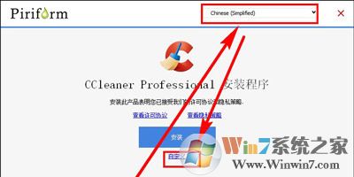 3、在安装界面上方可以把“英语”改成“中文简体”的,点击下面的【自定义】按钮。