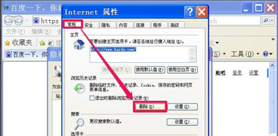 10、在Internet选项的“常规”选项卡中,点击“删除”按钮。