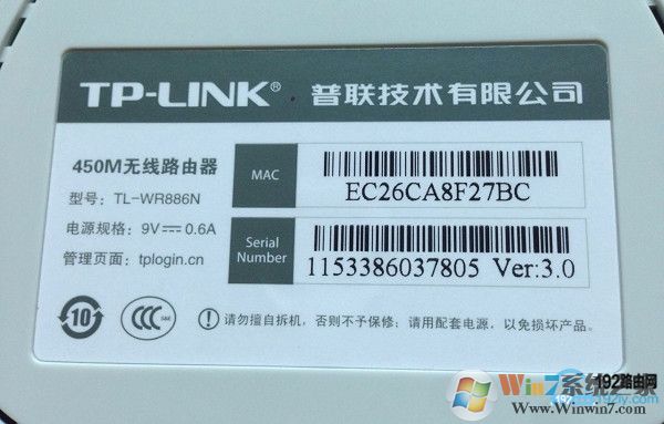 大家可以在自己路由器底部标签中,查看到这台路由器的设置网址信息,如下图所示。我这台路由器的设置网址是:tplogin.cn