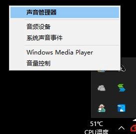 1、选择左下菜单栏向上的箭头,右键小喇叭,点击声音管理器;