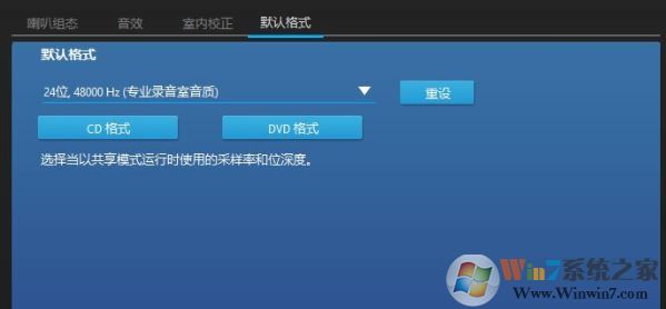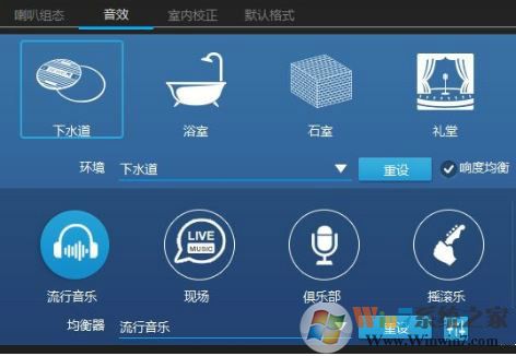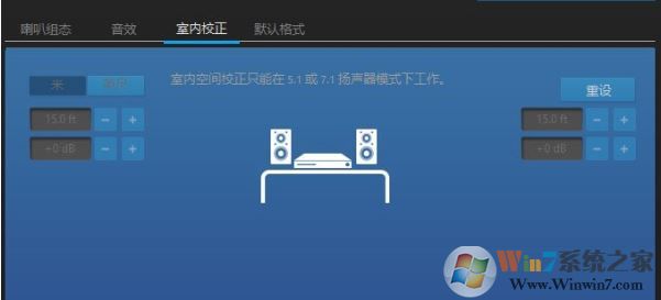 6、选择室内矫正音效,提示室内空间矫正只能在5.1或7.1扬声器模式下工作,所以不用处理;