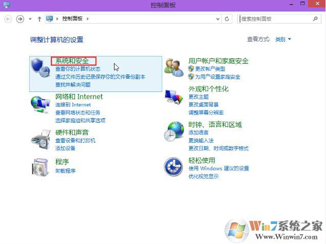 2.在打开的控制面板窗口中,点击打开“系统和安全”进入下一步操作。如下图所示