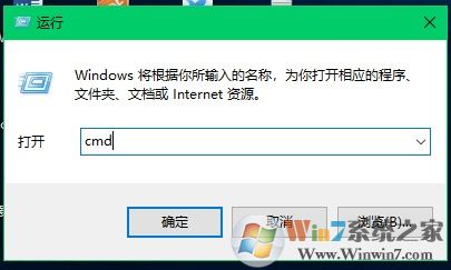 2、在弹出的运行窗口中,输入“cmd”,并且点击确定,如下图所示: