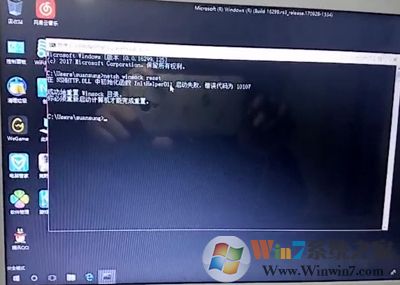 2、在弹出的命令提示符窗口中,输入“netsh winsock reset”,然后回车,重置完成后会提示重启电脑,此时我们直接正常重启电脑即可。