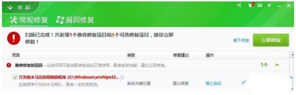 4、检测完毕后点击【立即修复】耐心等待完成修复。