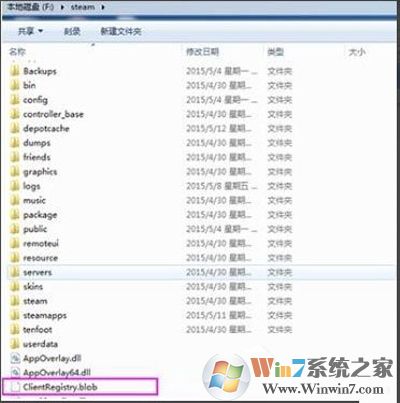 如果方法一不能解决Steam更新失败的问题,那就把Steam文件夹下的ClientRegistry.blob删除尝试下。