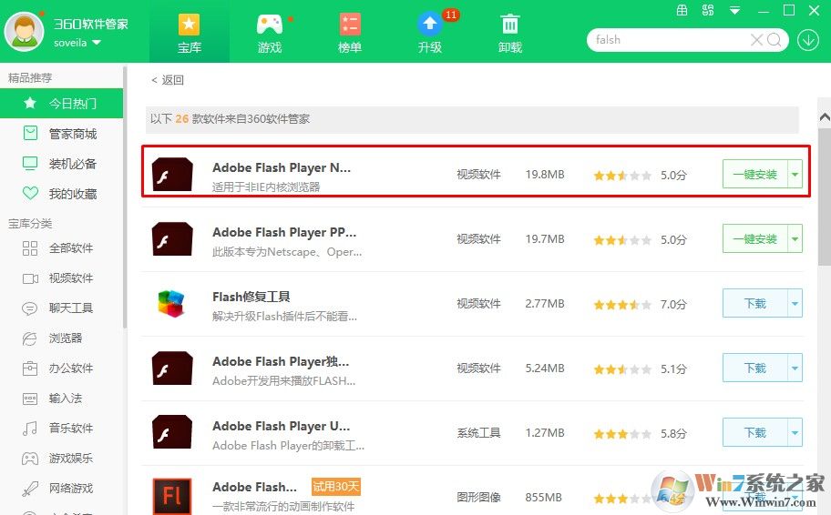 第二步: 使用360软件管理功能,更新最新版的Flash插件和您所喜欢的浏览器。