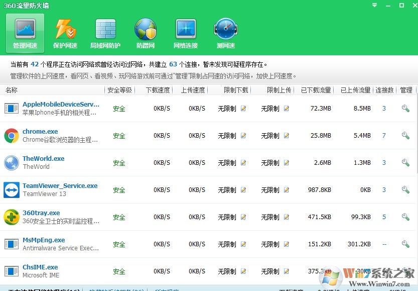 第三步: 通过360网速监控工具寻找哪些程序占用大量网速,还是自己的带宽不足问题。请阅读通如何测试网速您就可以了解自己的宽带并自由分配自己的带宽,将可以不用占用太多流量的程序关闭或者调整最小占用数值。