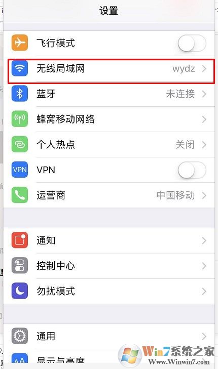 3、在设置列表的左侧点击“无线局域网”一栏,