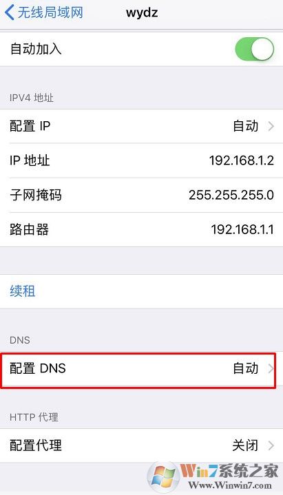5、随后可以看到 iPad 上的无线网络参数,点击最下单的配置DNS,