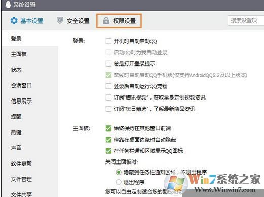 1、登录QQ后,点击QQ主面板左下角的打开系统设置按钮。
