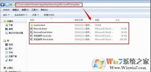 5、如果按以上操作启动WORD 2013速度都没有得到改善关闭WORD再进入C:\Users\Administrator\AppData\Roaming\Microsoft\Templates 这个目录把这里面的文件全部删除。