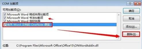 4、再把COM加载项内不要的项删除就可以了。再把WORD 2013关闭再开启试试看速度有没有得到提升。