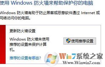 3、在防火墙界面点击【使用推荐设置】即可打开防火墙。