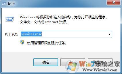 2、在运行窗口中输入Services.msc,回车,打开服务列表窗口。