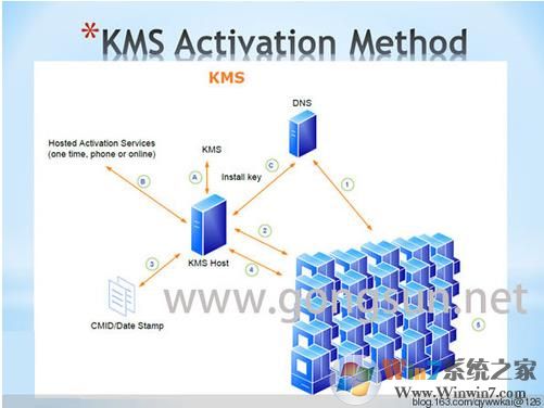 由于Windows Server 2008/2012和Windows Vista Enterprise以及Windows7/8/8.1都是为公司而设计,所以在一个公司中肯定会有很多台配置相等的计算机,并用一个服务器建立起一个局域网(LAN),而KMS正好利用这一点,它要求局域网中必须有一台KMS服务器,KMS服务器的作用是给局域网中的所有计算机的操作系统提供一个有效的产品序列号,然后计算机里面的KMS服务就会自动将系统激活。每一个由KMS Server提供的序列号的有效期只有180天,而不是其他版本的永久使用一个序列号。所以操作者必须在快到期的时候在此手动连接KMS服务器让它提供一个新的序列号,否则180天以后就会回到试用版本状态。