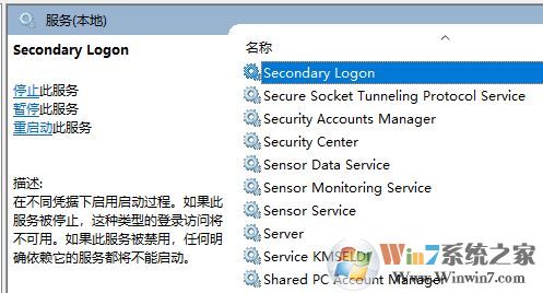 修复方法:尝试开启Secondary Logon服务
