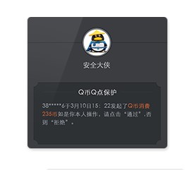 帐号异地消费Q币?修改了密保、密码?解除了游戏安全模式?直接推送消息到手机,您马上就知道!