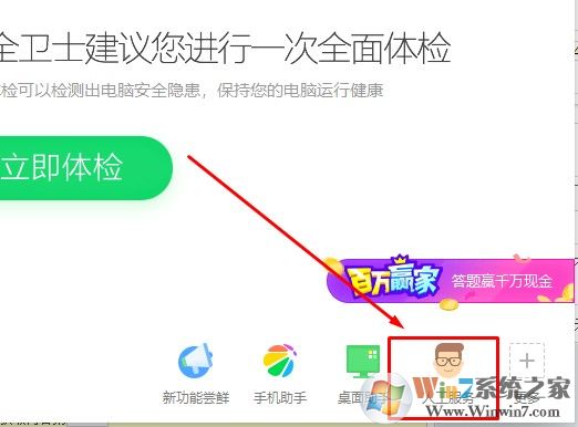 1、打开安全卫士软件,进入到主窗口。(没有安装该软件的可以前去网站上面下载)