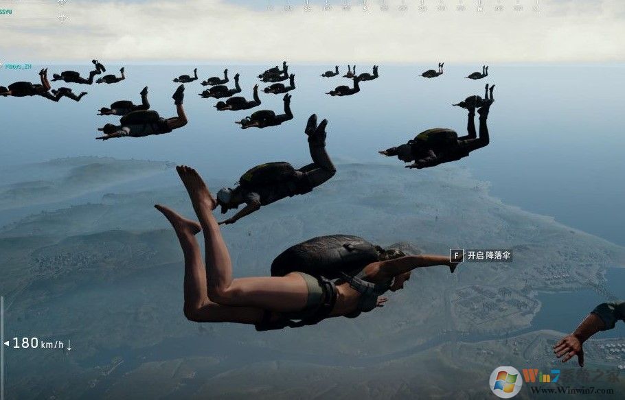 2、控制你的跳伞速度:30-60之间,我推荐平时保持40左右,即:(开伞后)按W提速—松开W降速—按W提速,此时伞的声音会像呼吸一样,呼(提速)吸(降速),操作起来并不难