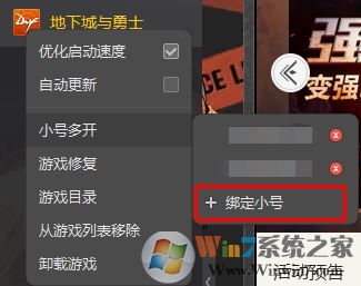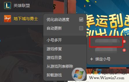 2、点开后我们点击 地下城与勇士,发现没有添加小号的按钮,在辅助设置界面也没有,其实很简单 ,我们只需在地下城与勇士 游戏图标上单击右键,此时会弹出相应菜单,点击【小号多开】;
