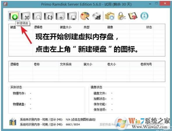 3、点击新建硬盘,开始创建虚拟内存盘了。