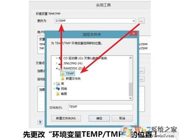 2、将Windows的临时文件夹存放到虚拟内存硬盘!(加快文件读取)