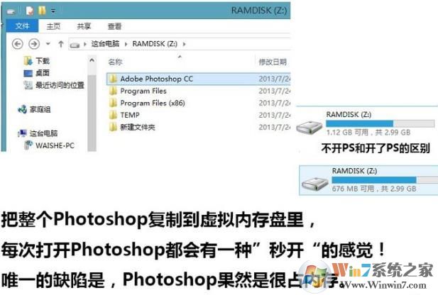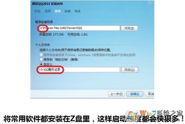 18、我们还可以把QQ什么的都放到Z盘,这样启动会快很多,同样的,设计软件photoshop什么的放在内存盘里,速度也会快很多。