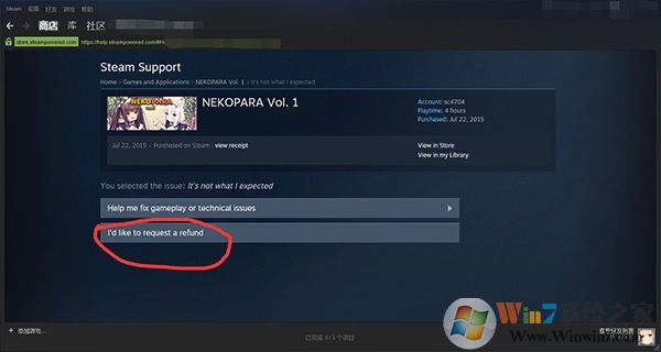 以上就是Steam中买的游戏觉得不好玩退款的方法了,需要注意的事退款之后这笔钱也不可以体现,只能继续购买别的游戏。