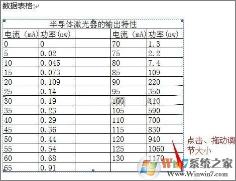 4、就可以在word中看到已创建的表格,点击一下表格,可以设置表格的格式,如“居中”。点击表格四个角的小点,拖动,可以调整表格大小。