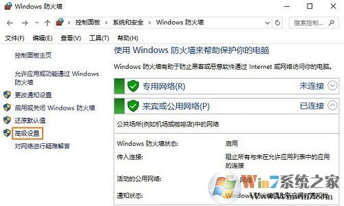 2、点击“Windows 防火墙”之后,打开“高级设置”;
