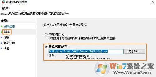 4、点击“程序”--浏览--找到需要阻止访问网络的程序。