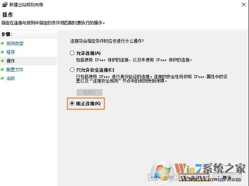 5、找到需要禁止的程序,勾选“阻止连接”,然后按照提示完成操作就可以了。