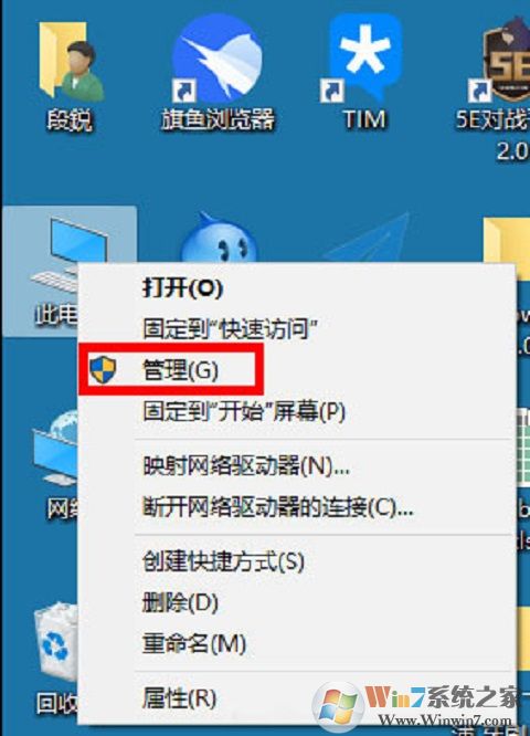 1、鼠标右击“此电脑”,选择“管理”。