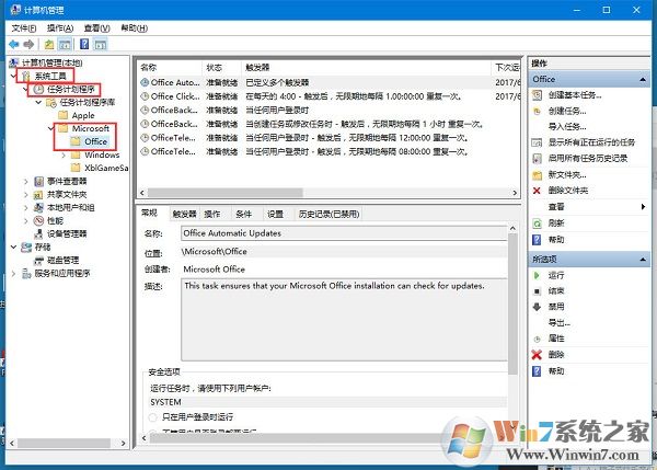 2、选择“系统工具” - “任务计划程序” - “任务计划程序库” - “Microsoft” - “Office”。