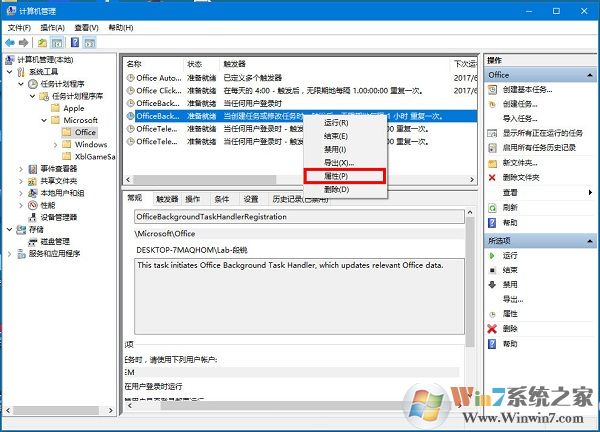 4、右击  “OfficeBackgroundTaskHandlerRegistration” 选择属性。