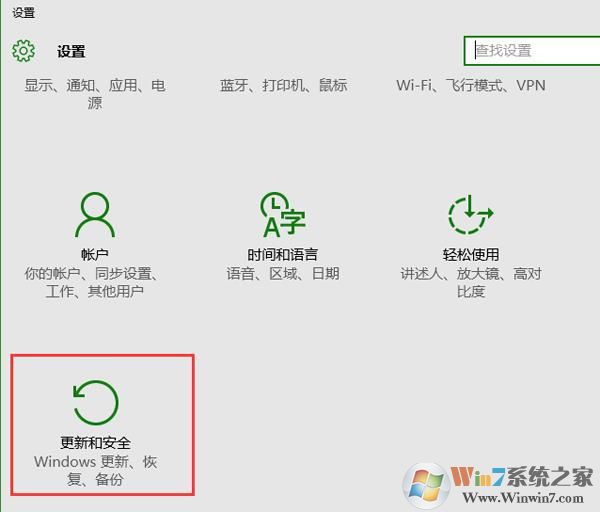 1、首先按组合键win+i打开系统设置窗口,然后点击更新和安全选项,如图所示: