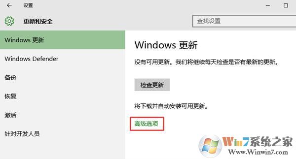 2、调出更新和安全的设置窗口后,我们点击windows更新下的高级选项,如图所示: