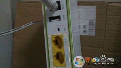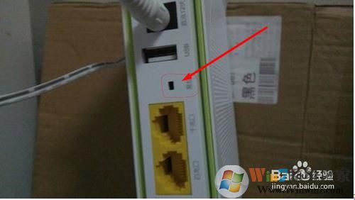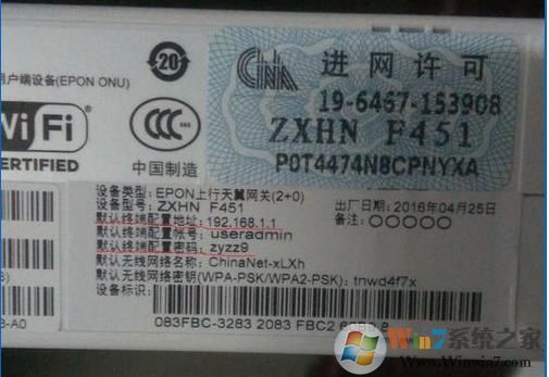 1、首先我们要查看天翼网关的地址和默认终端配置密码。可以从无线路由器背面标签得知。如果不知道密码了,可以通过复位将其改为默认密码(用插针捅一下复位孔)。