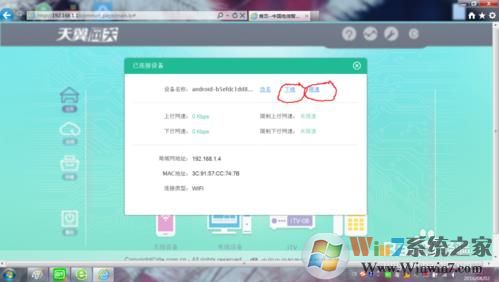 4、进入界面后,点开设备类型,再点击所选设备。出来界面后就可以进行下线处理和限速处理。