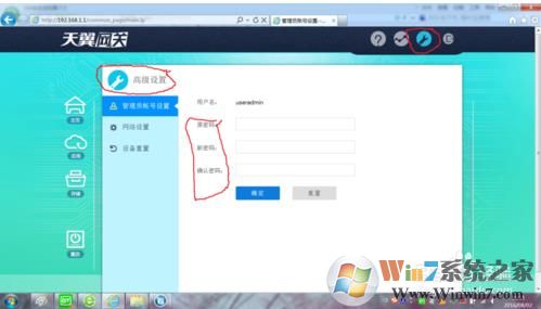 5、进入界面后,点击高级设置,输入原密码和新密码就可以修改终端配置密码了。
