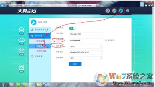 6、进入界面后,依次点击 高级设置-->网络设置-->无线设置,就可以对WiFi进行设置了(更改WiFi密码和强度)。