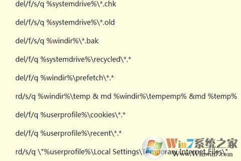 2、输入完毕后,最后将它保存为后缀名为“bat“的文件,比如“winwin7.bat”,然后我们在“winwin7.bat”文件上单击右键,选择“以管理员身份运行”,稍等一会,屏幕会提示“系统垃圾清除完成:)”。