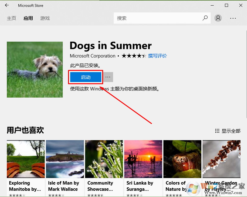 从设置-个性化-主题下,点击从应用商店联机获取主题,在点击获取自动下载完成后,通知提示已经安装,点击应用商店该主题下的启动按钮,无任何反应。