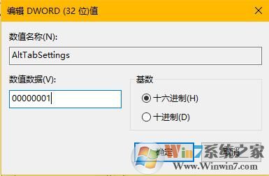 3、双击打开AltTabSettings,修改数值数据为“00000001”,如图: