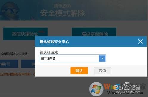 1、进入解除安全模式网页界面之后,点击选择微信解除安全模式,并选择DNF游戏,点击确定